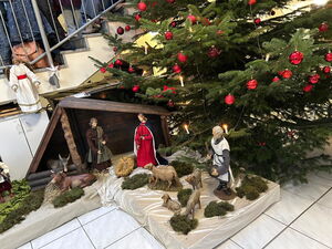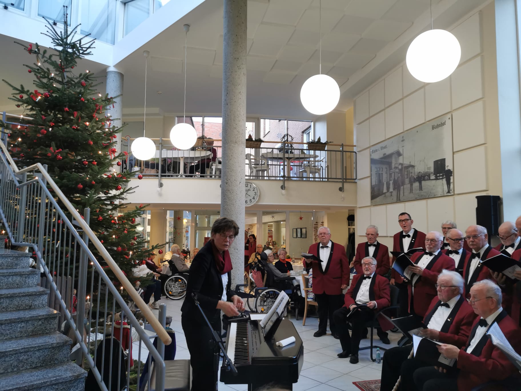 Traditionsgemäß findet unser Beitrag zur Adventsfeier im Haus Hildegard immer kurz vor Weihnachten statt. Meist ist schon ein Weihnachtsbaum aufgestellt und die Krippe aufgebaut, so auch diesmal. Monika moderierte sehr nett, gab zu vielen Liedern eine kurze Erklärung und forderte öfters auf mitzusingen. Wir begannen mit einigen Advents- und Winterliedern, „Klingglöckchen“, „Es ist für uns eine Zeit angekommen“, „Leise rieselt der Schnee“, „Macht hoch die Tür“.