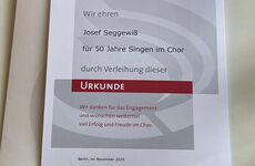 Unser Glückwunsch und Dank gilt allen 3 Sängern, verbunden mit der Hoffnung, dass sie noch lange mit uns verbunden sein und zumindest ab und zu, soweit ihre Gesundheit das zulässt, unsere Proben oder Aufführungen besuchen können.